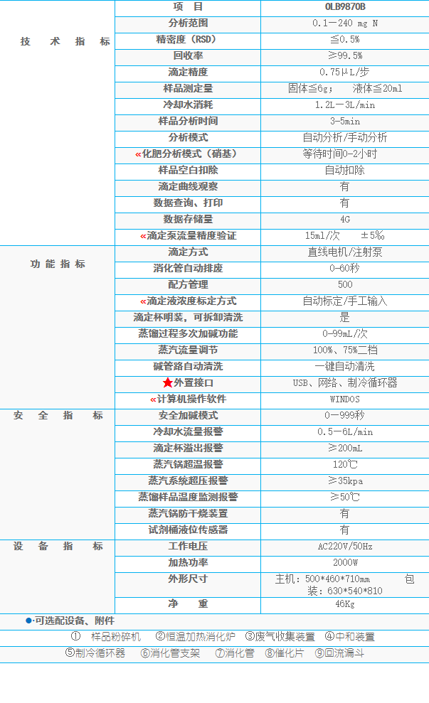 2. 分析方式——全自動分析,從試劑添加、蒸餾、滴定、數據存儲一鍵完成